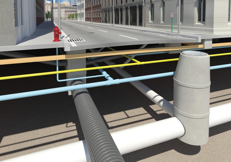 Redes de abastecimento de água e coleta de esgoto.